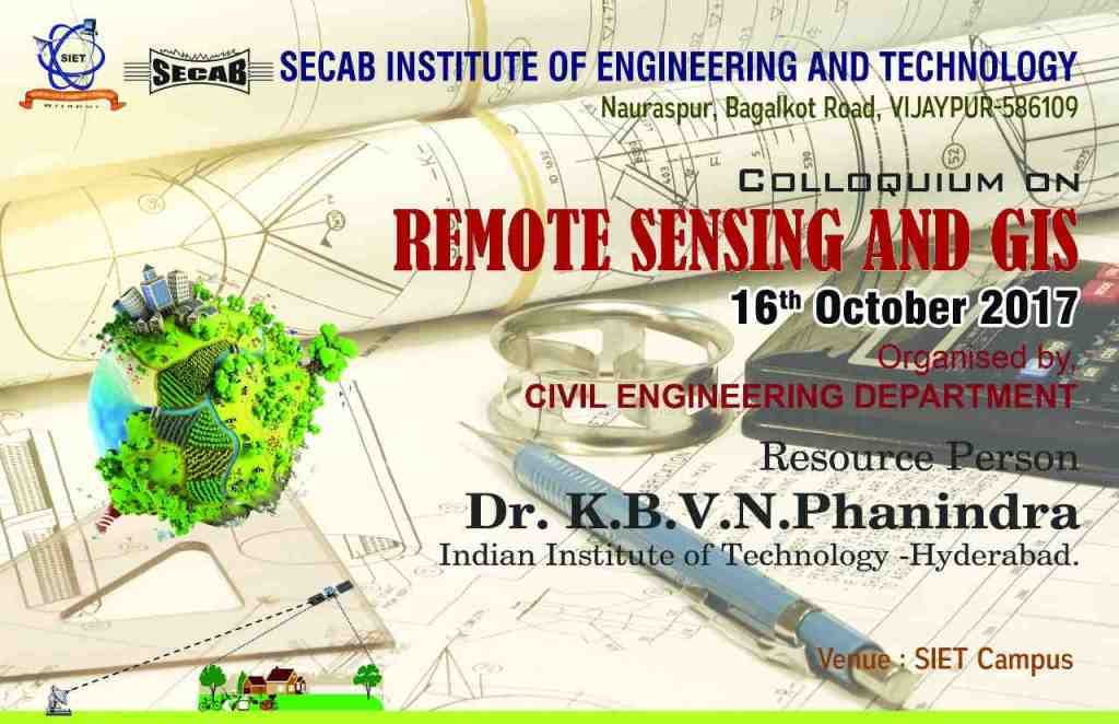 REMOTE SENSING AND GIS , an emerging topic in today’s civil engineering field. This one day colloquium has been beneficial to students and staff of civil engineering department. The topic can be utilized by staff members for their research work. Students (UG & PG) can work on GIS. This colloquium provided necessary and basic information of REMOTE SENSING AND GIS. The work can be conducted in our college research centre by establishing a new lab with Q-GIS software.