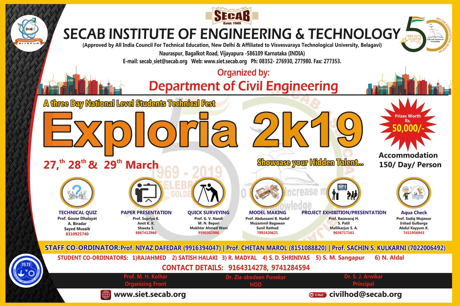 A three Day National Level Students Technical Fest Exploria 2k19 Dated on 27th,28th,29th March