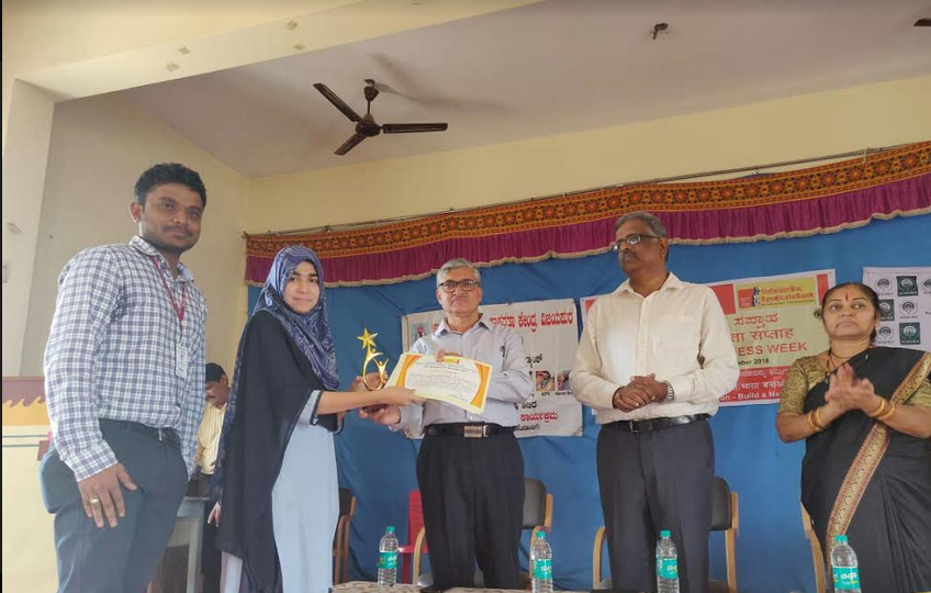 Madiha Jagirdar of Computer Science and Engineering Department won 3rd position in English Elocution organized by Syndicate Bank, Regional Office,Vijayapur during vigilance awareness week from 29th to 3rd November 2018.