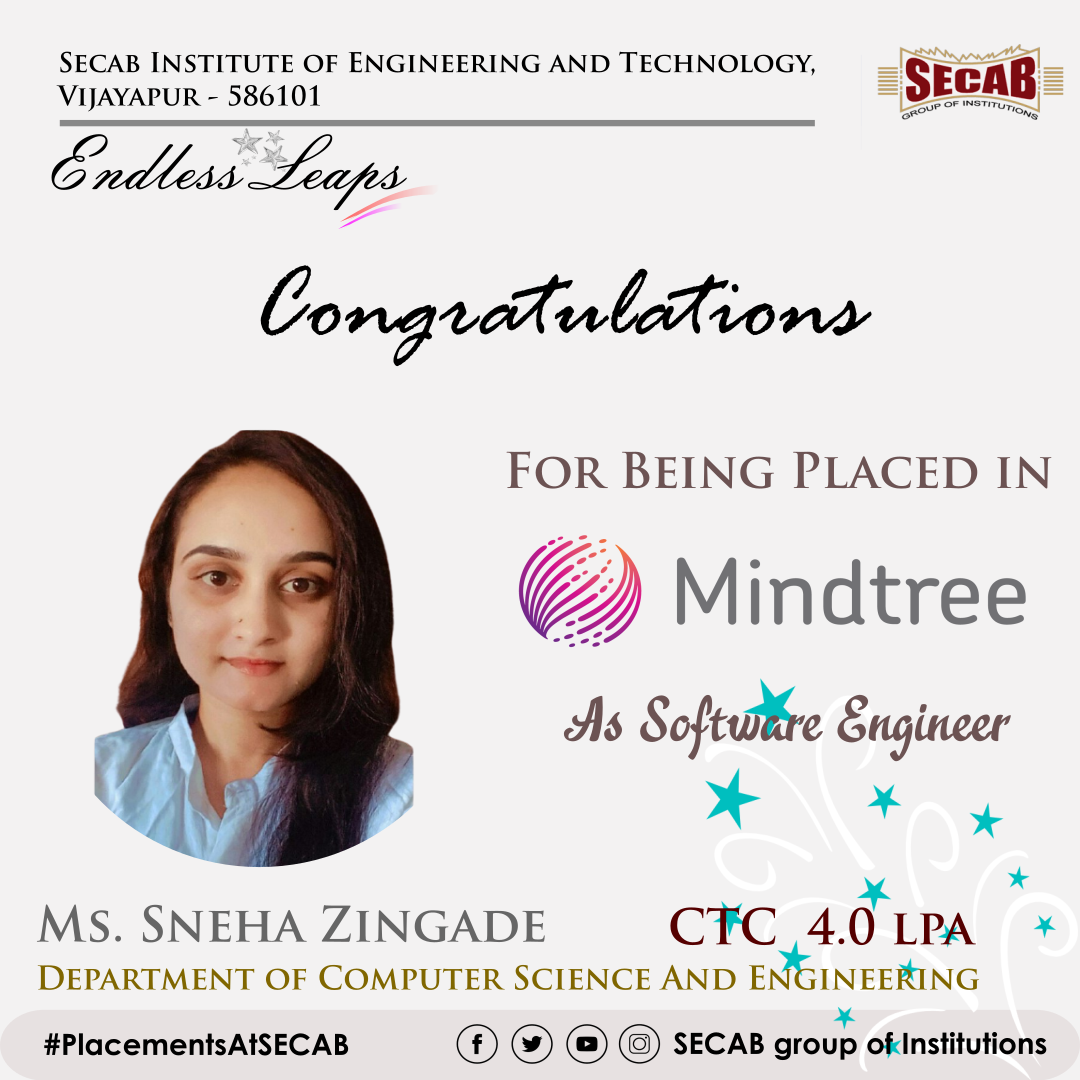 Hearty congratulations to Ms.Sneha Zingade from the Computer Science and Engineering Department for being placed in Mindtree as a Software Engineer .