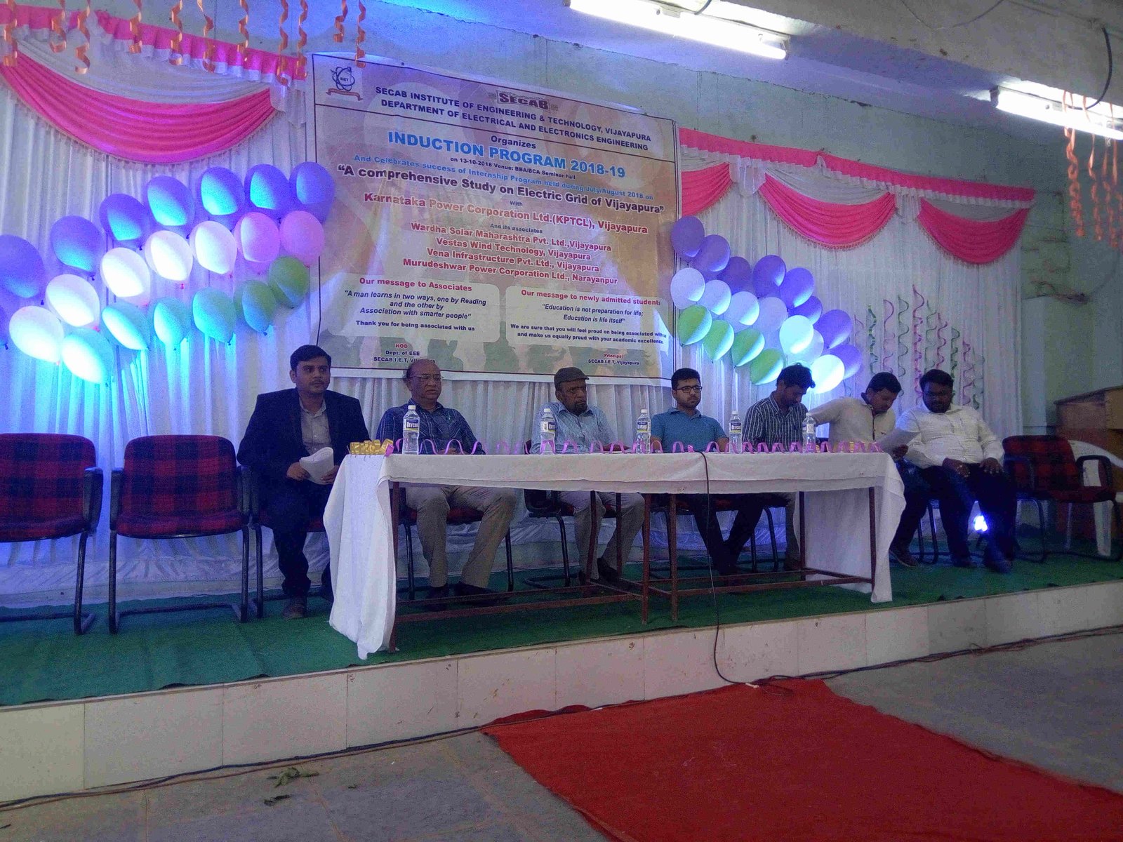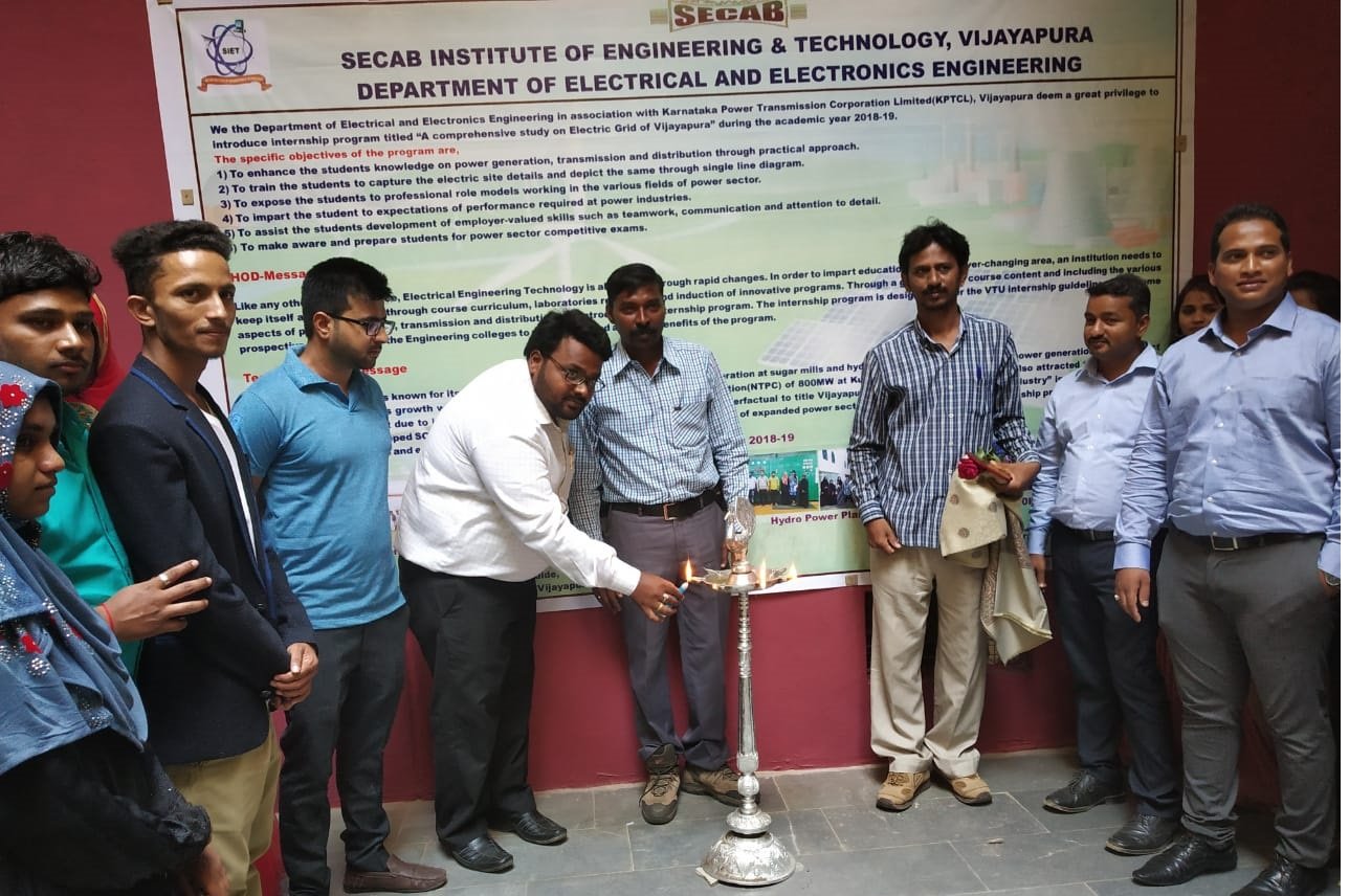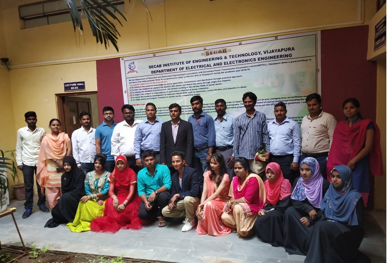 The department of EEE has celebrated successful completion of internship program "A Comprehensive Study on Electric Grid of Vijayapura", held in the month of July/August. The internship program was conducted for final year students under the guidance of Mr. Suhaib Mohammed, Assistant Professor, E&EE department. The internship program was conducted in collaboration with Karnataka Power Transmission and Corporation Ltd.(KPTCL), Vijayapura and its associates,