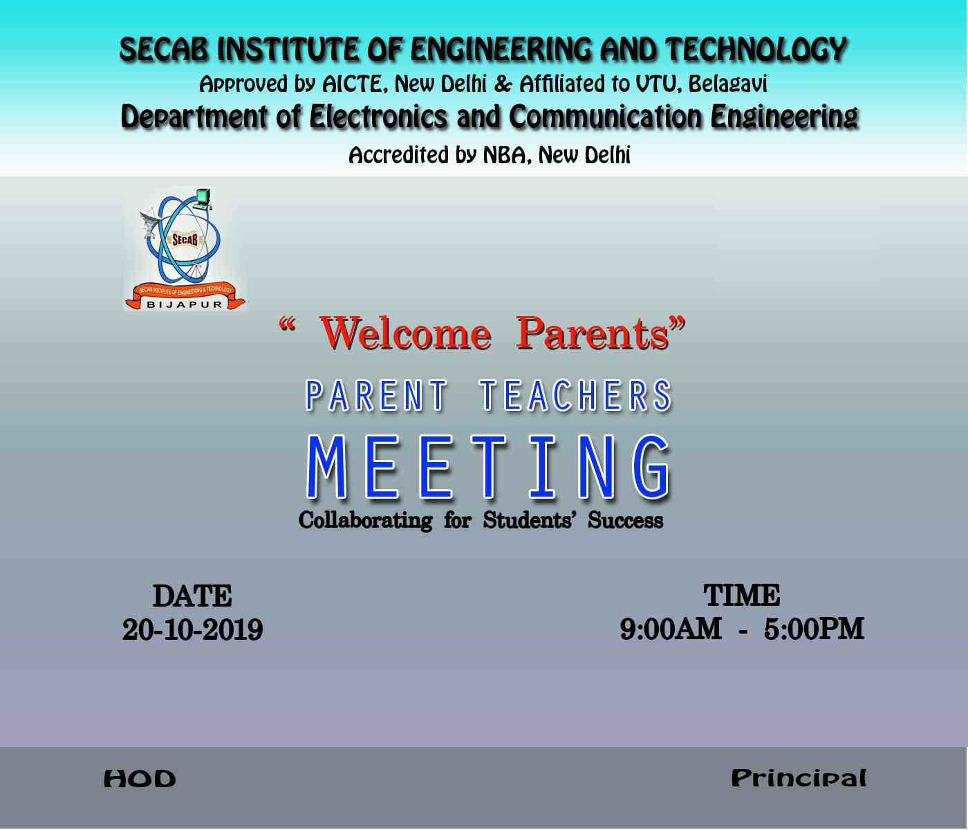 The department of Electronics & Communication Engineering conducted PARENTS MEET on 20/10/2019.The event was hosted by all the faculty members and HOD. Many students brought their parents for the meet. Parents interacted with faculties/mentors and they received a progress report of their child which included their first internal marks of all subjects and attendance. They had been given with the survey form which they filled.Few parents gave us the inputs l for further development of the Dept.