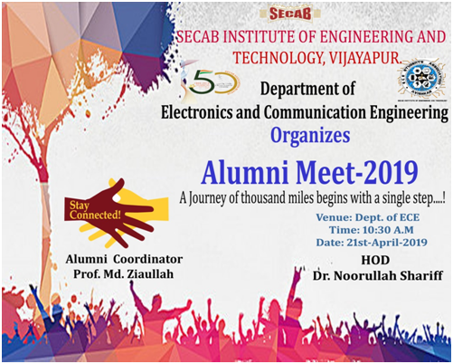 The Department of Electronics & Communication Engineering has organized an Alumni meet on 21st April 2019. The event was hosted by Prof. Mohammad Ziaullah. It was discussed in the meet to strengthen the link between the current SECAB I.E.T students and alumni for their support to current students in the area of training, placement, career counseling and any other help.