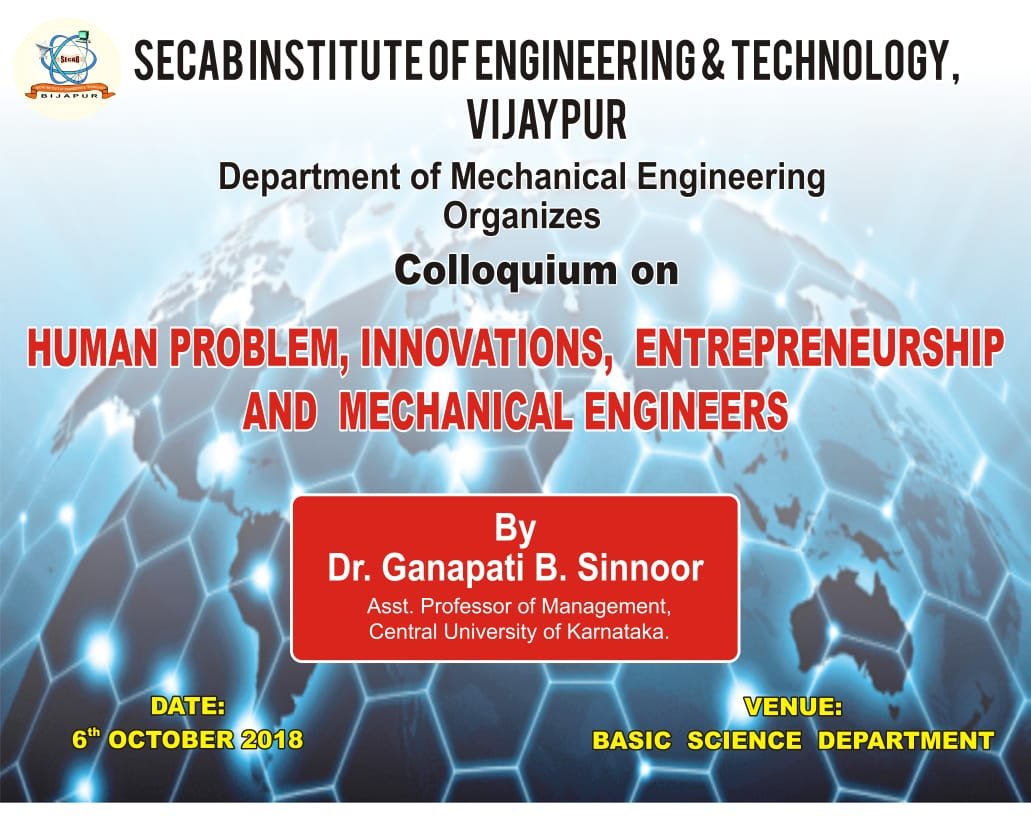 Colloquium on Human Problem, Innovations, Entrepreneurship And Mechanical Engineers